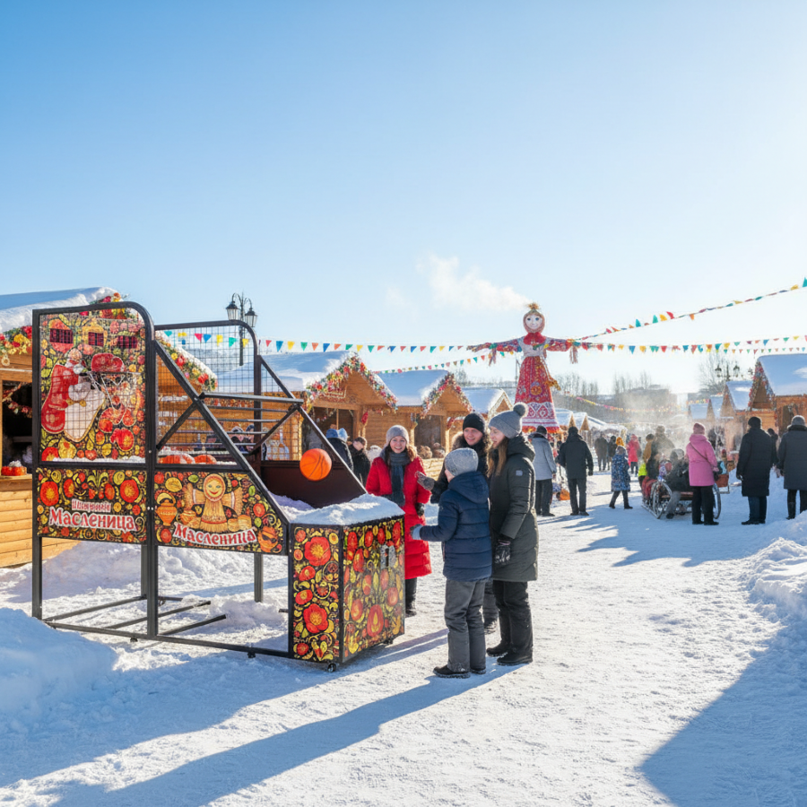 🔆Автомат "Баскетбол Масленичный"🔆 — это захватывающий аттракцион, который приглашает гостей погрузиться в атмосферу активной игры и проверить свои баскетбольные способности. Забрасывайте мяч точно в кольцо и выигрывайте призы, заряженные духом настоящей русской Масленицы!