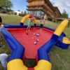 Надувной бильярд представляет собой весьма необычный симбиоз классического бильярда, крокета, некоего мини-гольфа и, конечно же, футбола! Главная задача, которая стоит перед игроками, играя, в бильярд надувной в аренду — попытаться забить шары в лунки в количестве большем, чем ваш соперник. Как вы можете видеть, задача как в бильярде. Только вместо шаров выступают футбольные мячики, которые перед началом игры составляют «бильярдную» пирамиду. Что касается лунок, конечно, они не такие, как в обычном бильярде, они намного больше, а по полю разрешается ходить и не торопясь прицеливаться. При помощи чего делать удары – выбор за вами.