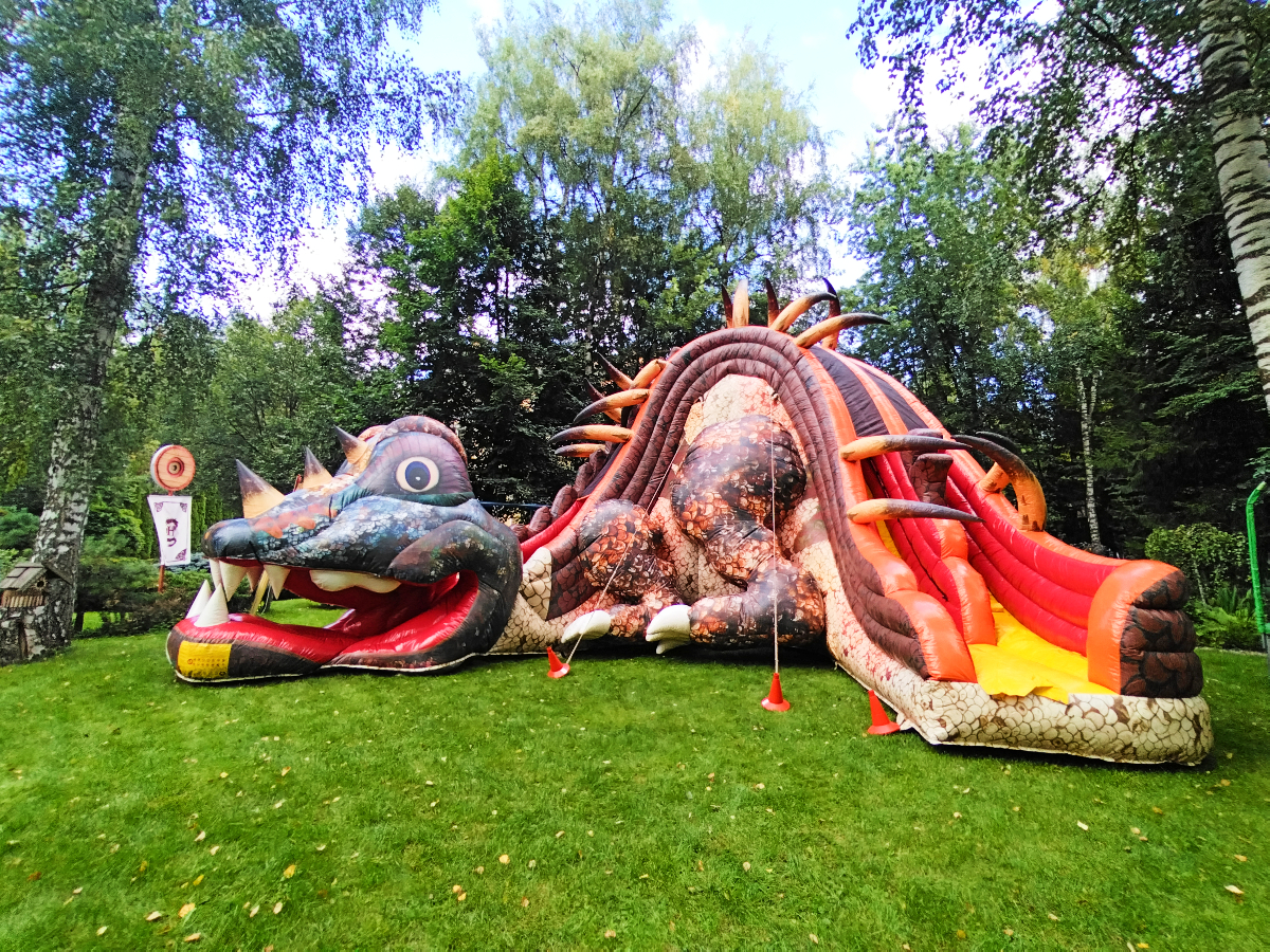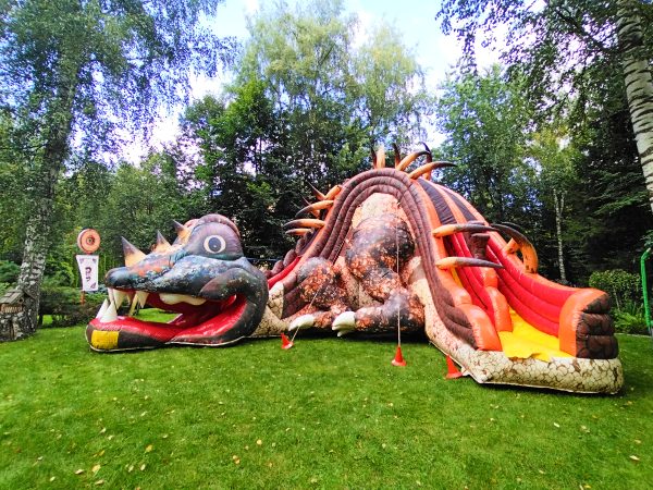 Захватывающее странствие начнется с огромными зубами ворот до самого хвоста дракона, где неожиданные приключения ожидают рыцаря, решившего сразиться с этим драконом. Этот волшебный мир выполнен для юных детишек, как надувной аттракцион.