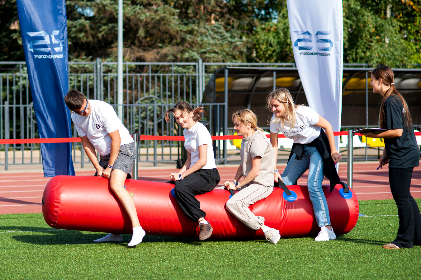 Кто-то захочет затормозить, а есть, те, кто прыгает совсем не в такт, а другие не могут удержаться и оказываются на земле. Данное препятствие будет сложнее преодолеть, чем механический бык! И только путем налаживания общего взаимодействие, Вы можете стать по-настоящему сплоченной командой, и одержать долгожданную победу! С аттракционом «Пневмотрубы» Ваши увлекательные старты могут стать действительно забавными и неповторимыми! Аттракцион представляет собой командное испытание, в котором участники должны будут оседлать большую надувную трубу (сжав её ногами) и попытаться проскакать на ней к финишу. Вы испытаете множество эмоций сразу: от удивления и смеха в начале, до радости победы на финише. Данный аттракцион прекрасно подойдет к любому празднику и всевозможной тематике. Например, ко дню космонавтики «Пневмотрубы» могут служить ракетами, летом – водными бананами. Всё ограничивается только Вашим воображением! Если с принципом игры всё достаточно просто, то в плане реализации аттракциона могут возникнуть вопросы! Ведь каждый игрок пытается прыгать по собственному методу, а чтобы добиться общей синхронности движения, необходимо команде действовать вместе!